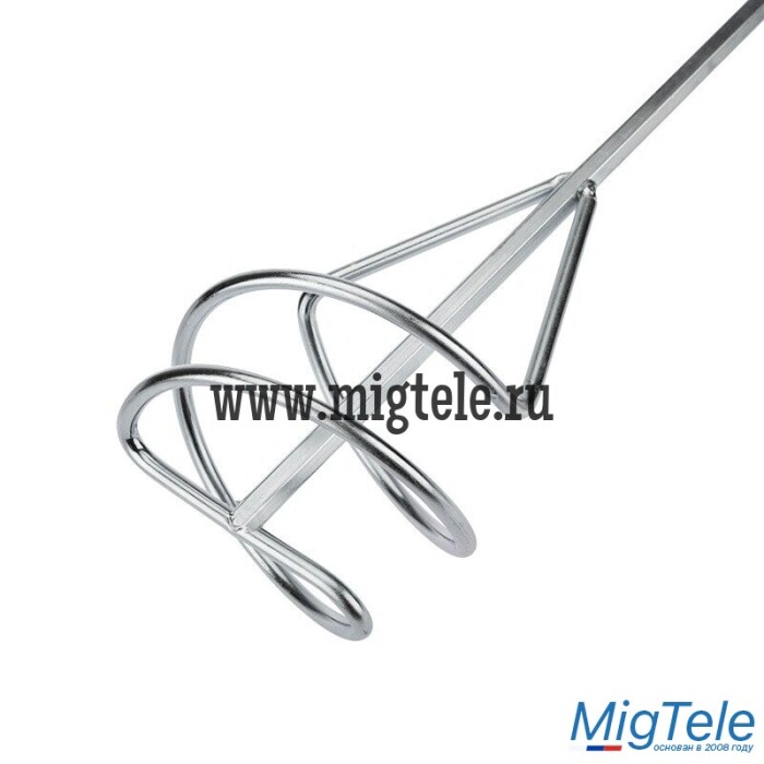Насадка-миксер (венчик) 100х400 мм шестигранный хвостовик для быстрого и эффективного перемешивания смесей и красок. Применяется совместно с дрелью. Для защиты от коррозии выполнен из оцинкованной стали.