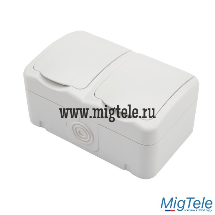 Блок горизонтальный 2 розетки Mini OG IP54 с заземлением, о/у, белый KRANZ предназначен для организации электроснабжения не только в сухом помещении, но и во влажной и пыльной среде.