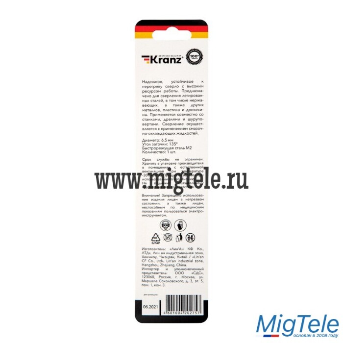 Описание Rexant KR-91-0532 Сверло по металлу 6,5х101х63 мм