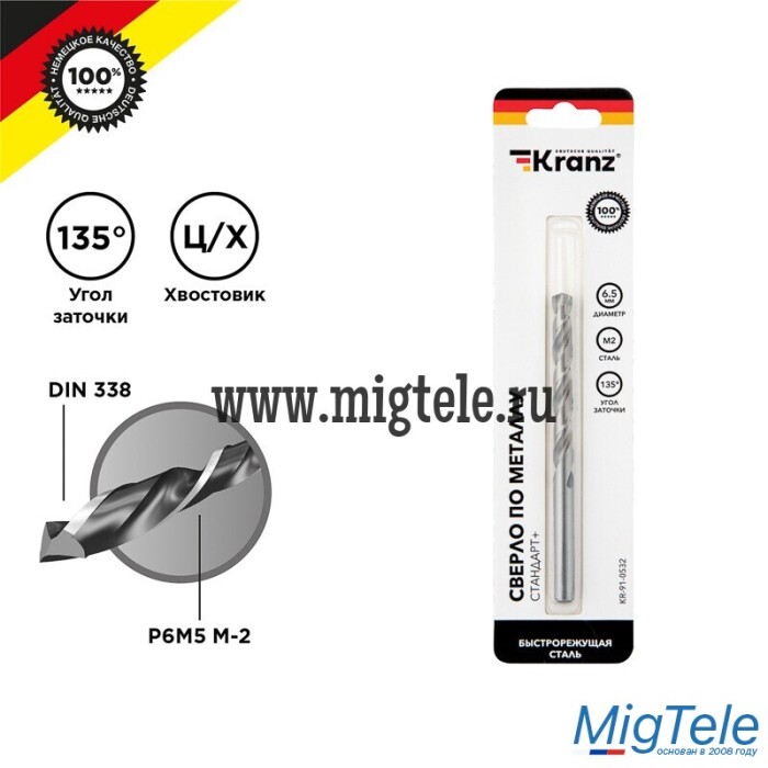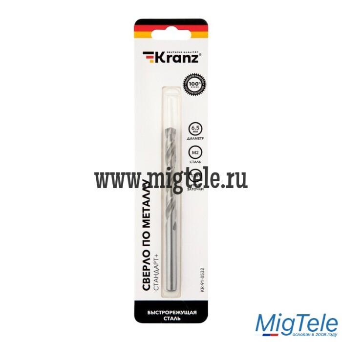 Сверло по металлу KRANZ соответствует стандартам профессиональной оснастки и используется во время различных ремонтных работ. Предназначено для сверления отверстий в нержавеющей и жаростойкой стали, легированной и нелегированной стали, сером чугуне, стальном литье, кислотостойкой стали, металлокерамике, цветных металлах и твердой пластмассе при помощи дрели с цилиндрическим креплением, которое используется в большинстве электроинструментов бытового и профессионального назначения. Изделие выполнено из качественной стали, что обеспечивает долгий ресурс работы и высокую производительность, а также препятствует быстрому нагреву во время использования. Конструкция со стабилизирующей спиралью сохраняет точное положение оснастки во время сверления, что гарантирует ровные и аккуратные отверстия. Заточка режущей части под углом 135 градусов способствует эффективному входу в материал, что увеличивает цикл службы оснастки и уменьшает износ бура. Оснастка выпускается на современном производстве, что снижает возможность изготовления бракованных изделий. Технологичные сверла рассчитаны на долгий срок службы, а стандарт DIN 338 гарантирует качество. Ресурс использования заметно увеличивается при использовании СОЖ. Диаметр хвостовика соответствует диаметру сверла.