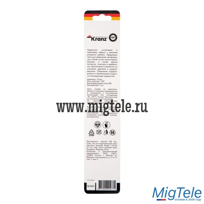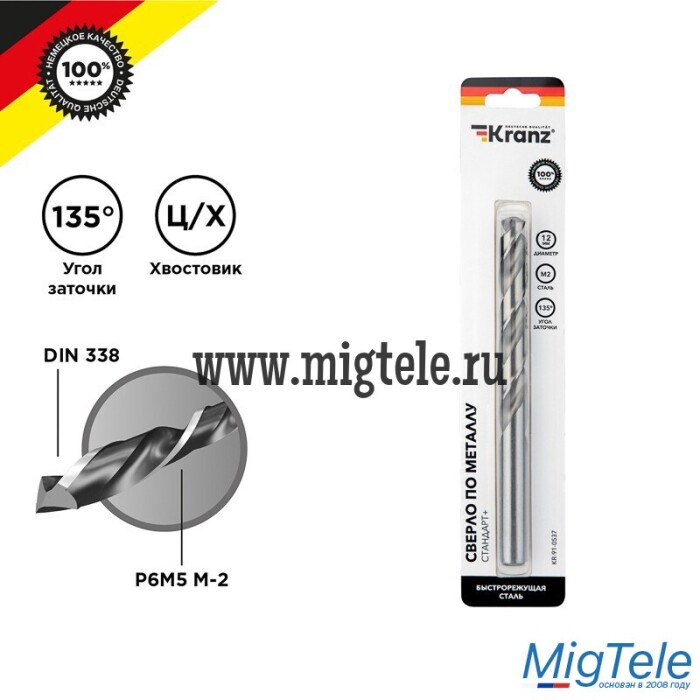 Описание Rexant KR-91-0537 Сверло по металлу 12х151х101 мм