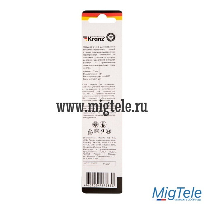 Сверло KRANZ соответствует стандартам профессиональной оснастки. Предназначено для сверления отверстий в мягких и средних по твердости металлах, пластике и различных породах дерева при помощи дрели или станка с цилиндрическим креплением, которое используется в большинстве электроинструментов бытового и профессионального назначения. Изделие выполнено из качественной инструментальной стали, что обеспечивает долгий ресурс работы и высокую производительность. Конструкция со стабилизирующей спиралью сохраняет точное положение оснастки во время сверления, что гарантирует ровные и аккуратные отверстия без трещин и сколов. Заточка режущей части под углом 118 градусов способствует эффективному входу в материал, что увеличивает цикл службы оснастки и уменьшает износ бура. Диаметр хвостовика соответствует диаметру сверления.