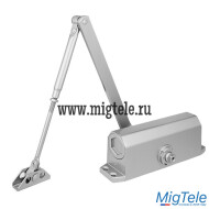 Первый тип весьма распространенный, устанавливается на верхнюю часть двери. Они представляют собой рычажную систему и пружины. При открывании на возвратный механизм (пружину) идет основная нагрузка. Накладные доводчики бывают двух типов: